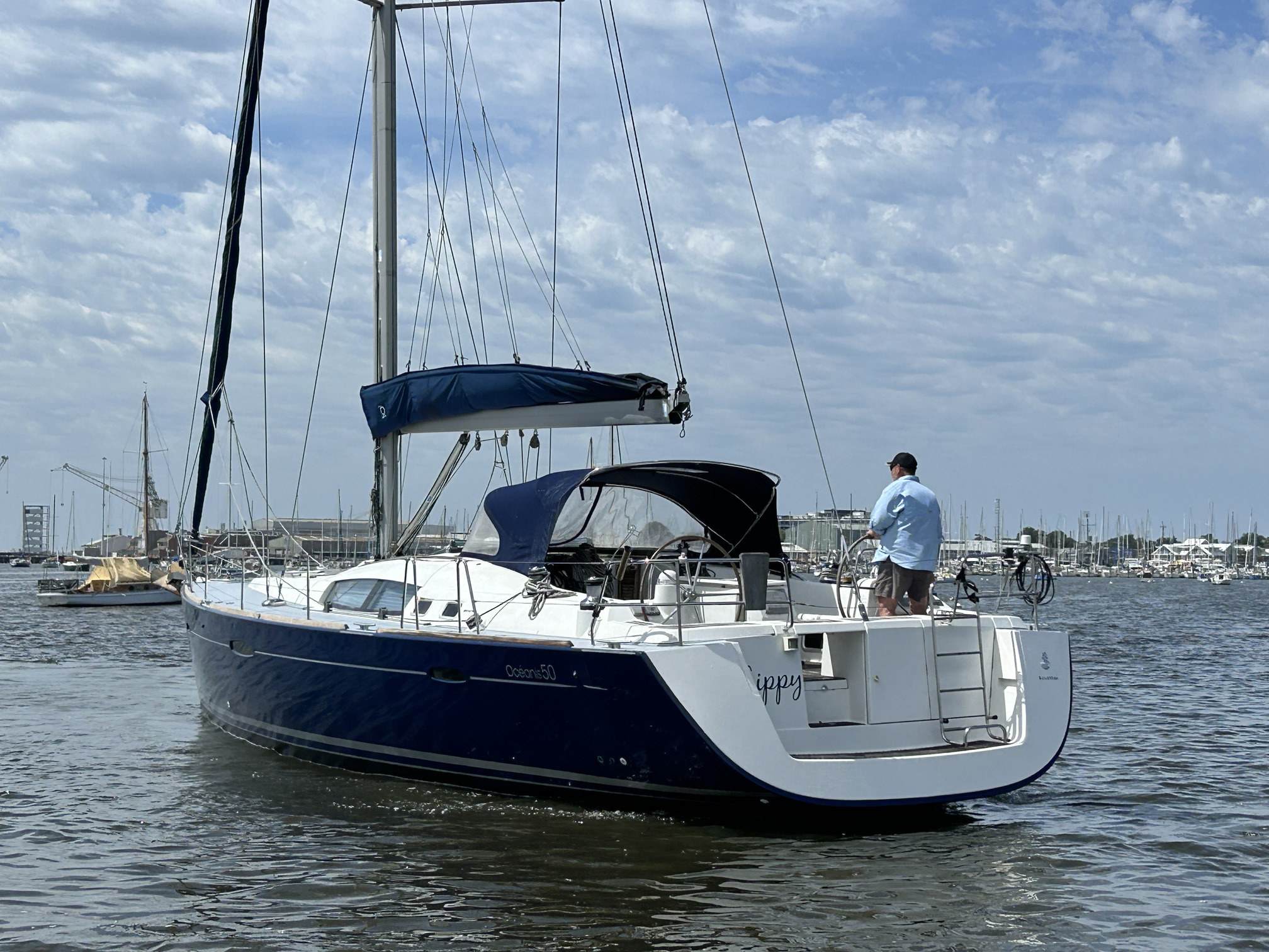 1 Hull/sBeneteau Oceanis 50, 2007 model, set up for offshore cruising, but still a great boat for weekend bay trips or competitive club racing. She underwent a recent major maintenance session (8/25) including new rudderstock, new prop shaft, new dodger, new lifelines, full rig inspection and even a full 2 pack hull respray and deck repaint, along with all of the usual annual maintenance items. This big volume yacht is not only in excellent condition, but is well appointed with a Yanmar 110 Hp motor, 3 cabins & 2 heads, bow thruster, water-maker, Raymarine electronics; including radar, autopilot, wind instruments and VHF, 3.8m Zodiac inflatable tender, good sail inventory, 7 winches – including electric primary, big galley fridge and separate freezer, big T.V, portable genset, teak cockpit flooring and so much more! Beneteau’s 50 Oceanis is a popular model that can be sailed shorthanded by a couple or host a big crew at your favourite regatta– either way you are out on the water with family and friends, at one with the elements and breathing in fresh air; it doesn’t get any better than that! Set sail with Aussie Boat Sales and get on board the boat of your dreams today.(full inventory on request)