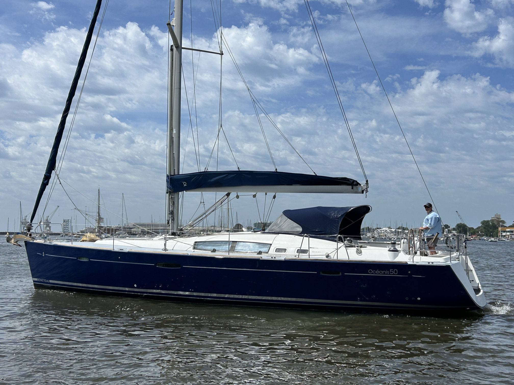 Beneteau Oceanis 50, 2007 model, set up for offshore cruising, but still a great boat for weekend bay trips or competitive club racing. She underwent a recent major maintenance session (8/25) including new rudderstock, new prop shaft, new dodger, new lifelines, full rig inspection and even a full 2 pack hull respray and deck repaint, along with all of the usual annual maintenance items. This big volume yacht is not only in excellent condition, but is well appointed with a Yanmar 110 Hp motor, 3 cabins & 2 heads, bow thruster, water-maker, Raymarine electronics; including radar, autopilot, wind instruments and VHF, 3.8m Zodiac inflatable tender, good sail inventory, 7 winches – including electric primary, big galley fridge and separate freezer, big T.V, portable genset, teak cockpit flooring and so much more! Beneteau’s 50 Oceanis is a popular model that can be sailed shorthanded by a couple or host a big crew at your favourite regatta– either way you are out on the water with family and friends, at one with the elements and breathing in fresh air; it doesn’t get any better than that! Set sail with Aussie Boat Sales and get on board the boat of your dreams today.(full inventory on request)