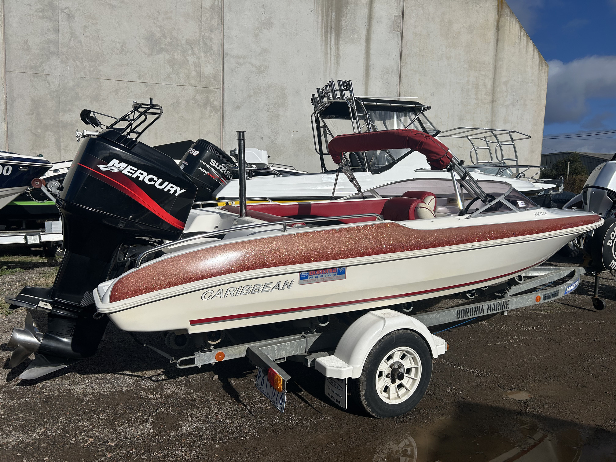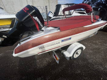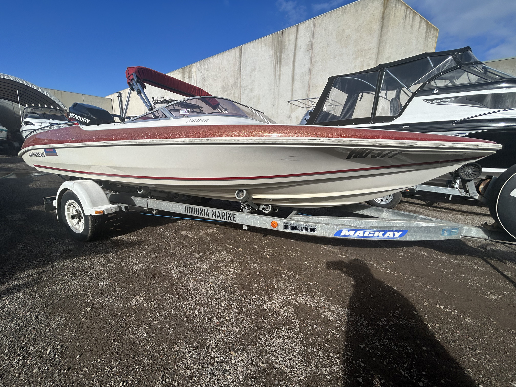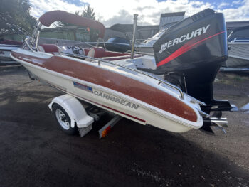 1 Hull/sCaribbean Jaguar classic ski boat, 2001, Mercury 140 HP V6 outboard, Mackay trailer. This one owner boat is in excellent condition and is totally original. Well optioned with stainless prop, non-feedback steering, in floor fuel tank, ski pole, bimini and tonneau cover, swim ladder and more! It is easy to see that the boat has been loved and well maintained, and it has passed our rigorous inspection proving to be both structurally and mechanically sound. It presents as a wonderful classic runabout that would suit a first boat owner looking to get out on the water or an astute collector wanting a good turnkey boat that can be used today, but will go up in value tomorrow.