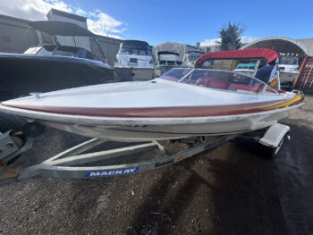 Caribbean Jaguar classic ski boat, 2001, Mercury 140 HP V6 outboard, Mackay trailer. This one owner boat is in excellent condition and is totally original. Well optioned with stainless prop, non-feedback steering, in floor fuel tank, ski pole, bimini and tonneau cover, swim ladder and more! It is easy to see that the boat has been loved and well maintained, and it has passed our rigorous inspection proving to be both structurally and mechanically sound. It presents as a wonderful classic runabout that would suit a first boat owner looking to get out on the water or an astute collector wanting a good turnkey boat that can be used today, but will go up in value tomorrow.