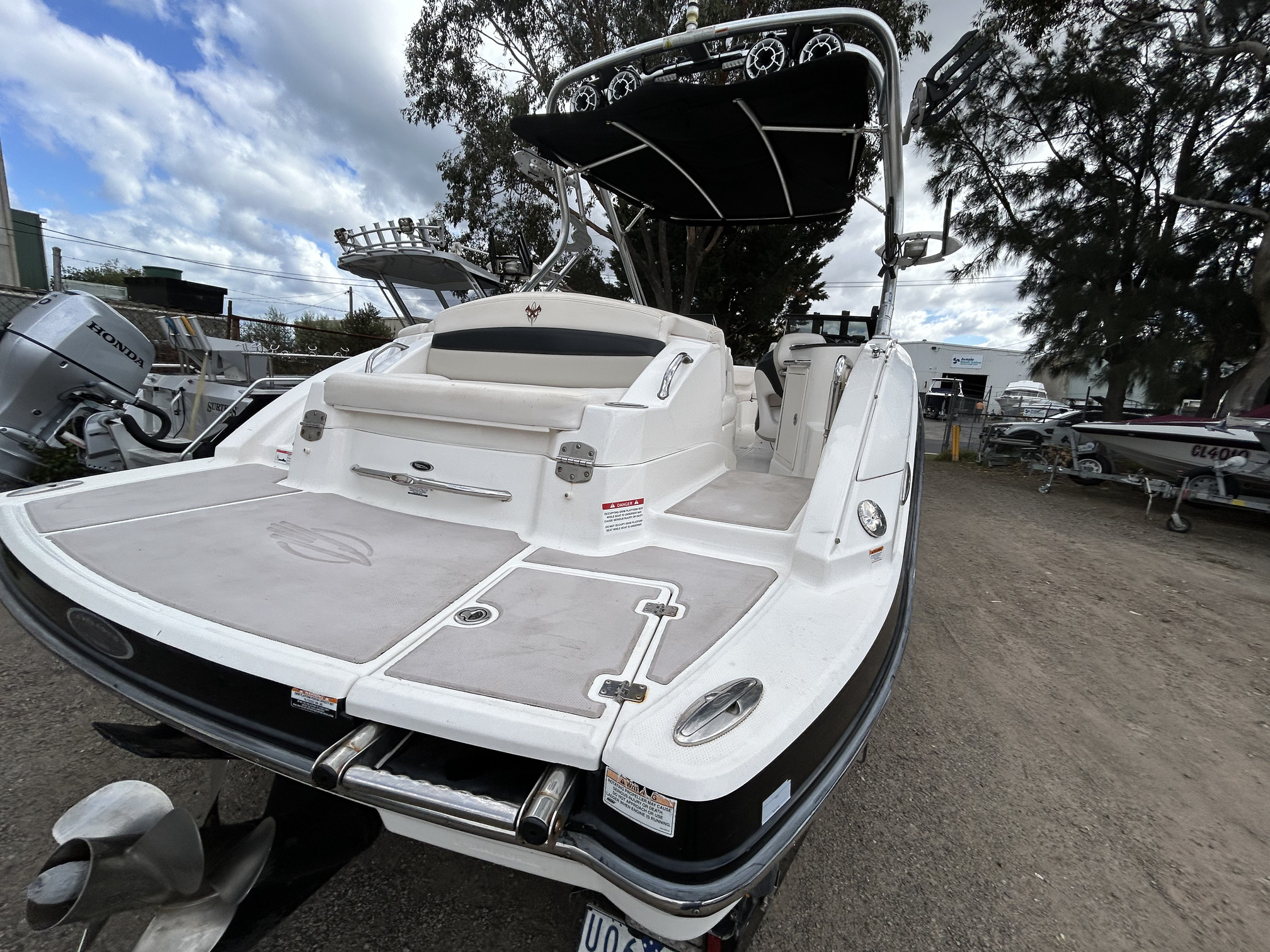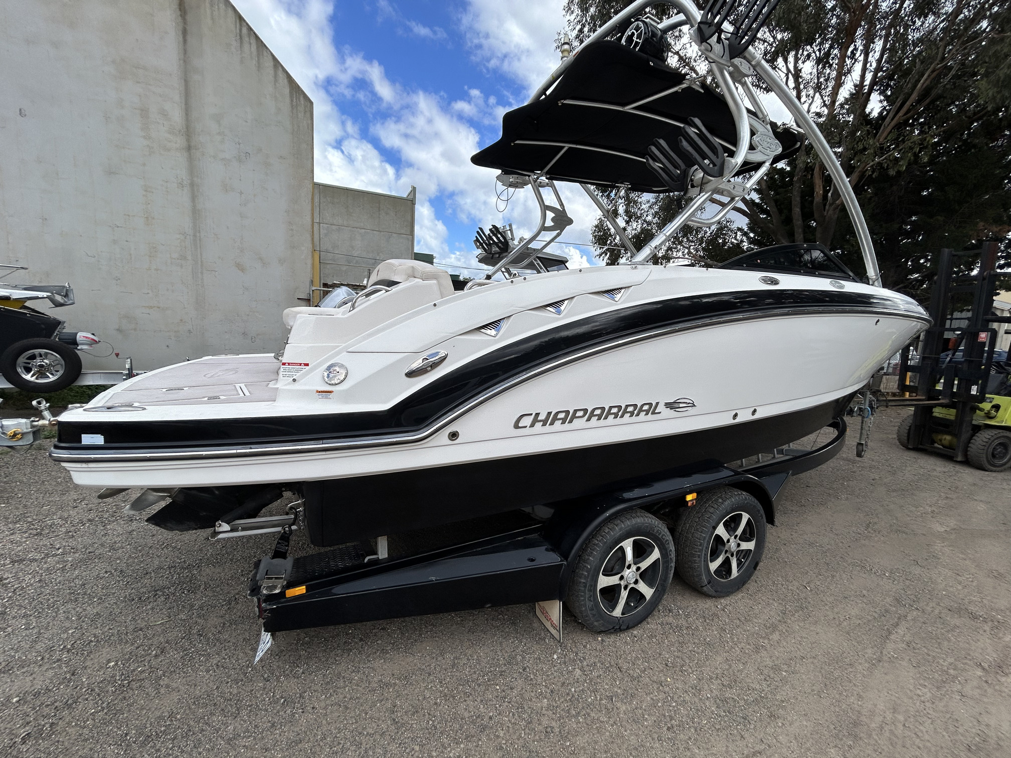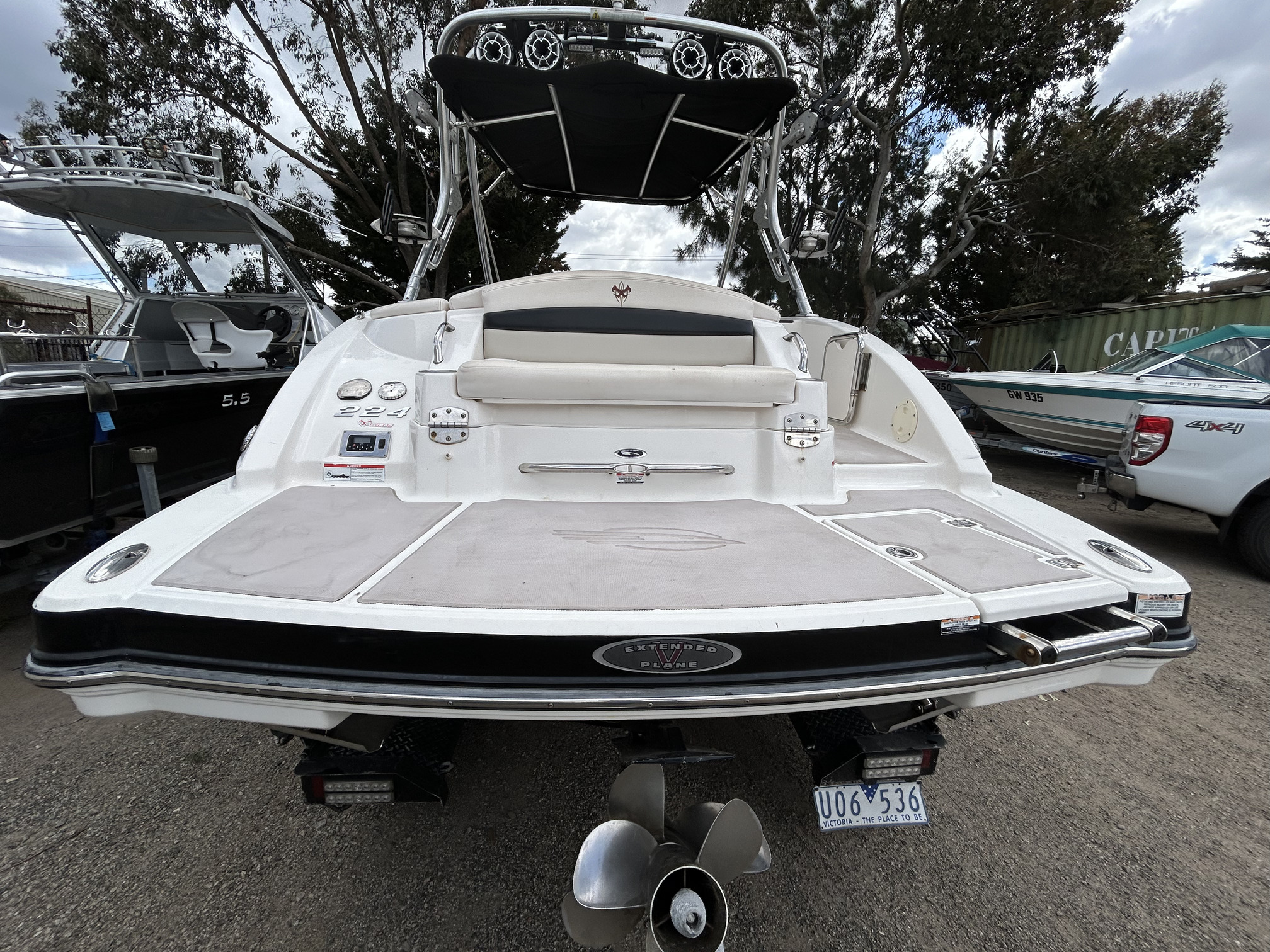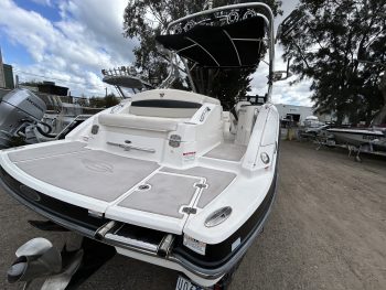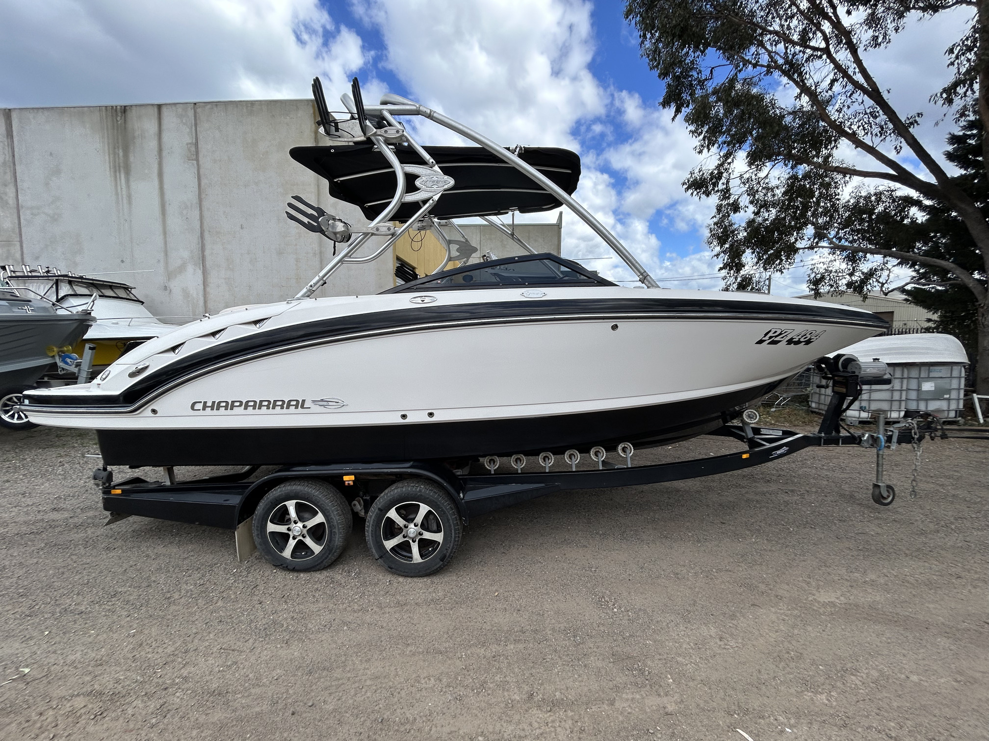 1 Hull/sChaparral 224 Xtreme bowrider, 2011 model, Mercruiser 6.2L V8 320 HP, Bravo 3 stern drive, 340 hours, Easytow tandem trailer with mags, spare, electric brakes, painted black, The 224 Xtreme is a genuinely good wake boat, set up with all of the best wake boarding features in its day, including; double wake tower, multiple wake racks, hard ballast system, smart tow GPS cruise control system – pro version (perfect pass), trim tabs to get the wake really rocking, full spec sound system with subbie, tower speakers, big amp, transom and helm stereo remotes, tower lights, fresh water tank with bow and transom shower and wet bar sink, cockpit table, electric toilet, Garmin screen, tilt steering, docking light, deluxe helm seats with bolsters, bow and cockpit covers and heaps more! The 224 Xtreme is one of our favourite boats, with an awesome deck layout, stacks of space for the crew, very capable hull in rough conditions and jam packed with standard features. This boat has lived on the Murray River all of its life and is priced here including a full detail. Don’t muck around, summer is just around the corner and these 224’s don’t come up very often.