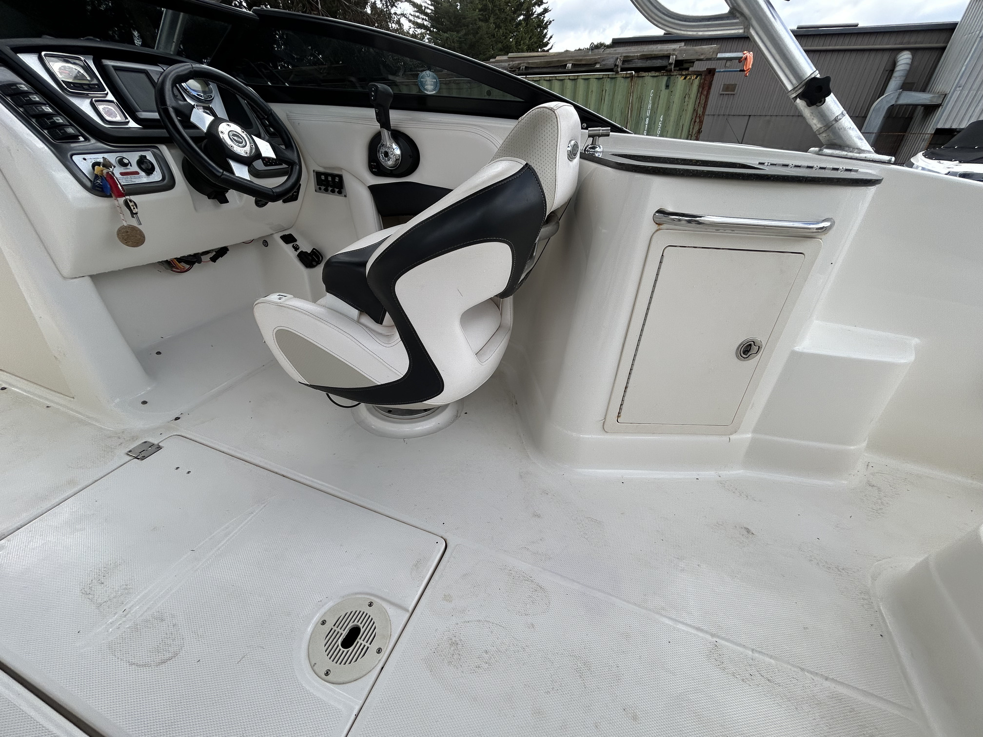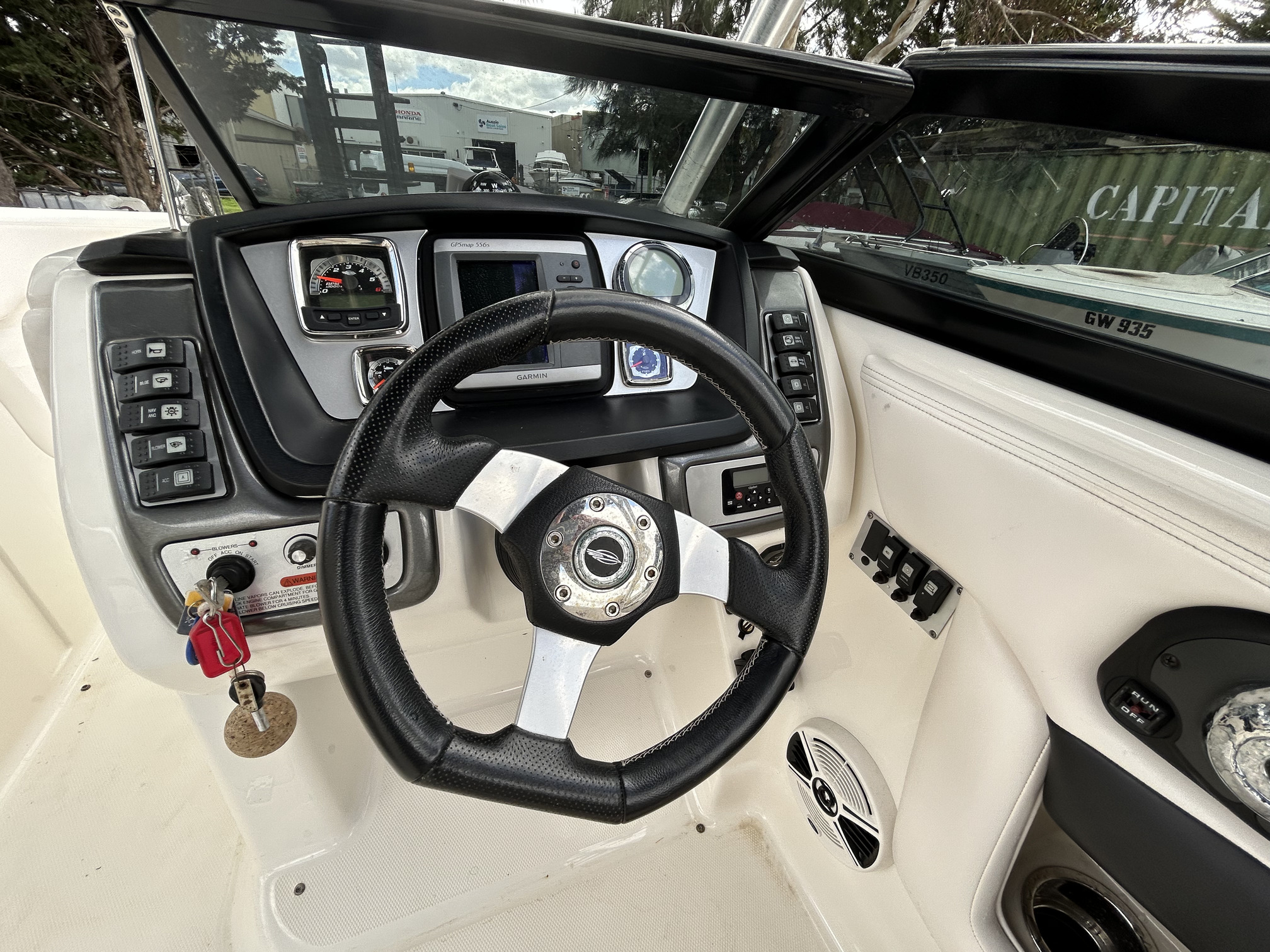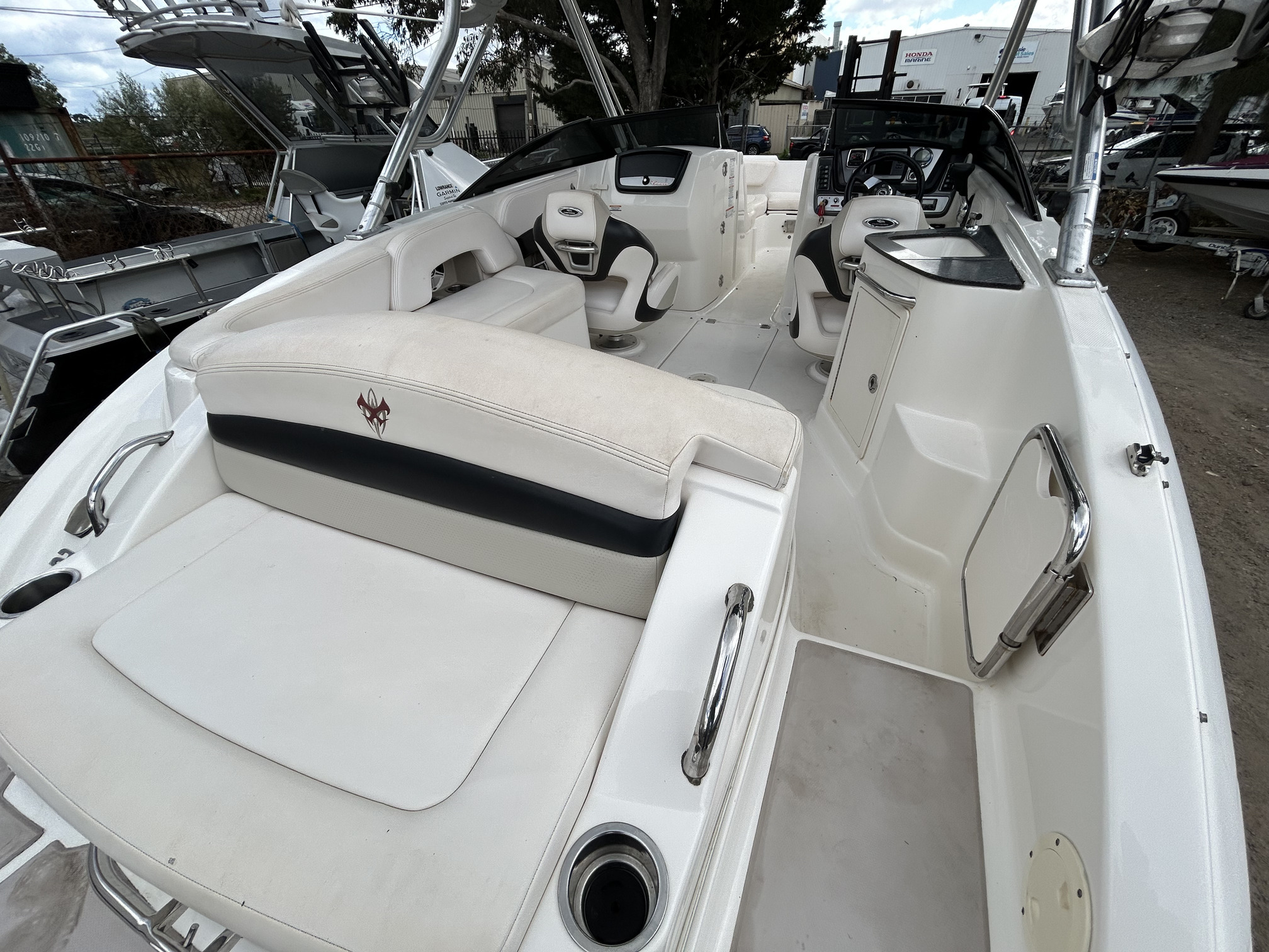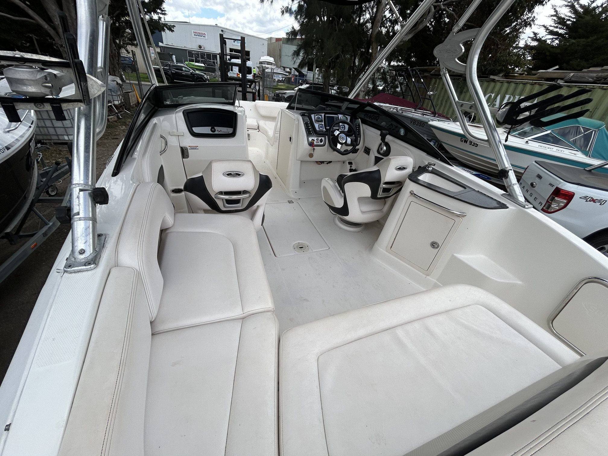 1 Hull/sChaparral 224 Xtreme bowrider, 2011 model, Mercruiser 6.2L V8 320 HP, Bravo 3 stern drive, 340 hours, Easytow tandem trailer with mags, spare, electric brakes, painted black, The 224 Xtreme is a genuinely good wake boat, set up with all of the best wake boarding features in its day, including; double wake tower, multiple wake racks, hard ballast system, smart tow GPS cruise control system – pro version (perfect pass), trim tabs to get the wake really rocking, full spec sound system with subbie, tower speakers, big amp, transom and helm stereo remotes, tower lights, fresh water tank with bow and transom shower and wet bar sink, cockpit table, electric toilet, Garmin screen, tilt steering, docking light, deluxe helm seats with bolsters, bow and cockpit covers and heaps more! The 224 Xtreme is one of our favourite boats, with an awesome deck layout, stacks of space for the crew, very capable hull in rough conditions and jam packed with standard features. This boat has lived on the Murray River all of its life and is priced here including a full detail. Don’t muck around, summer is just around the corner and these 224’s don’t come up very often.