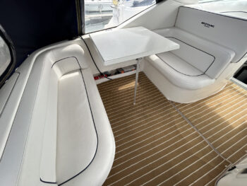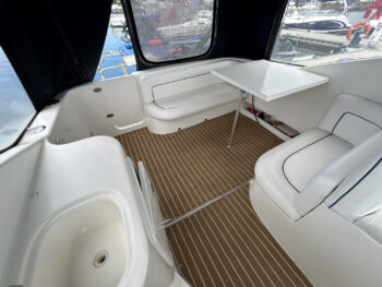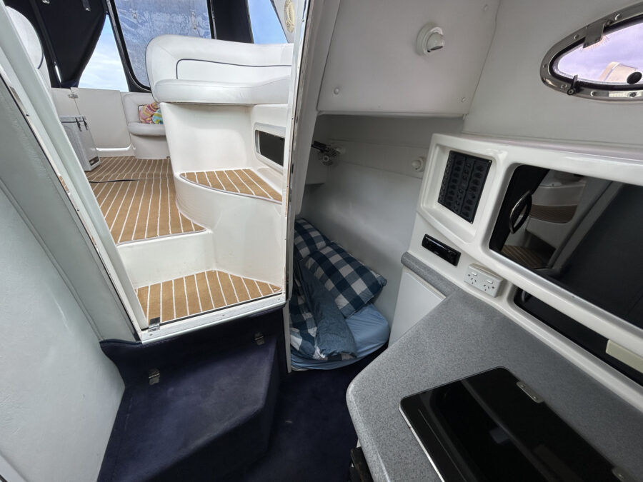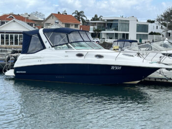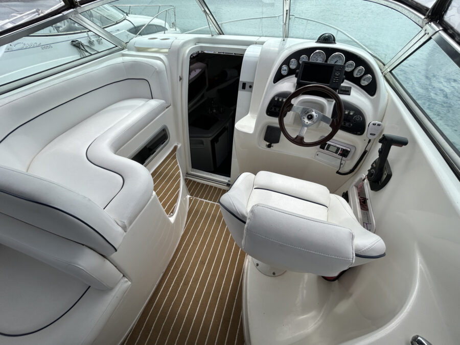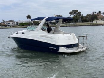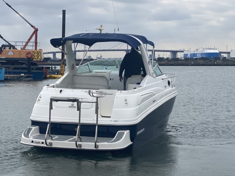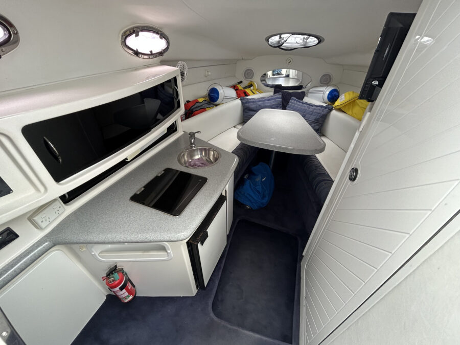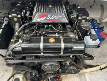 Mustang 2800 Sports Cruiser, 2001, Mercruiser 5.0L EFI 260 HP V8, (close circuit cooled) bravo stern drive, this boat had major engine out mechanical work undertaken during covid, including new riser manifolds, new transom plates and reconditioned cylinder heads, at the same time the hull was 2 pack painted, an upgraded Garmin GPS/Sounder, and Seadeck on the swim platform was added along with a bunch of other upgrades. Since then, the cockpit has been re-upholstered and general maintenance has been diligently carried out with annual services, antifoul and detailing. This tidy boat is nicely optioned with stainless stern rail, BBQ and bait board set up, transom shower, swim ladder, Trim tabs, electric anchor winch with chain counter, cockpit carpets, Pressure hot water, 12/240V fridge, dual fuel stove, 240 Volt shore power with battery charger, TV/DVD, C.D Stereo, VHF & 27MHZ radios and more! This is a nice example of these popular entry level cruisers, a marina berth is available in Williamstown for you to enjoy.