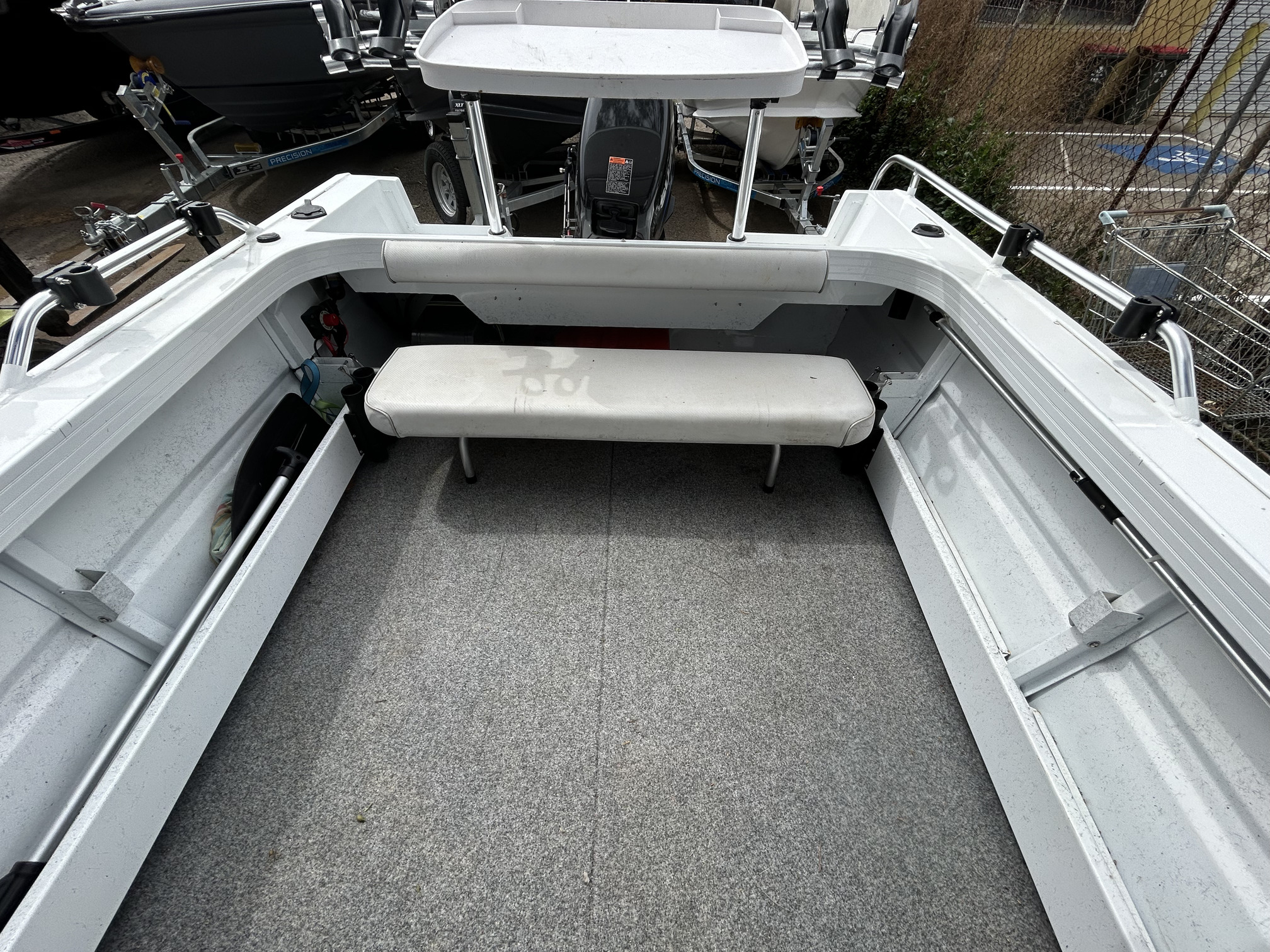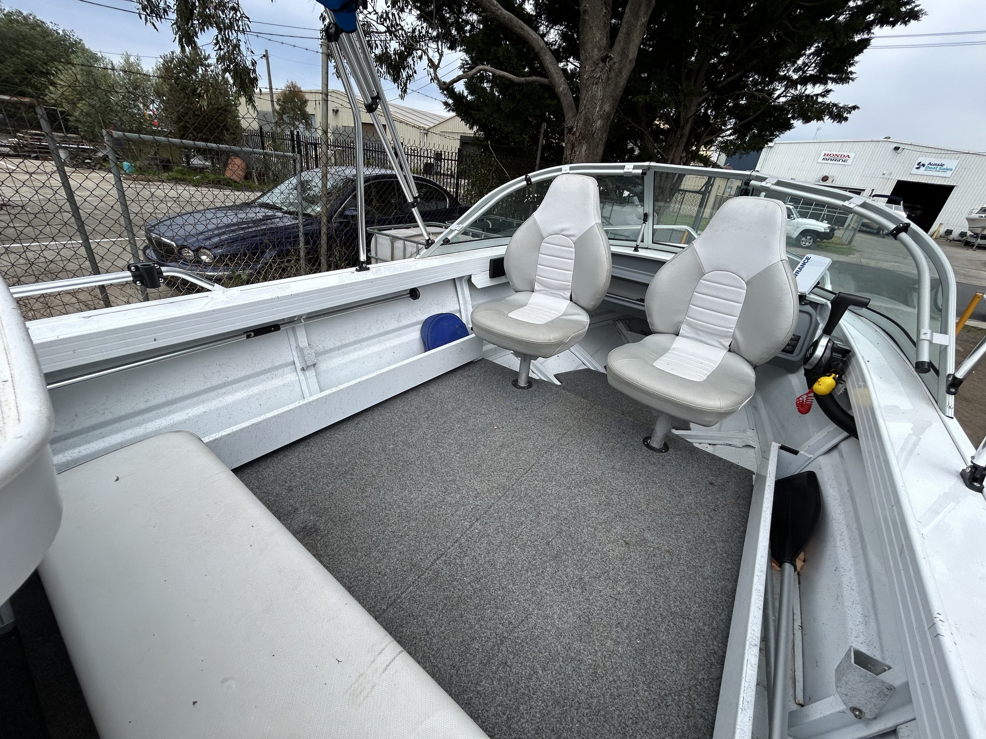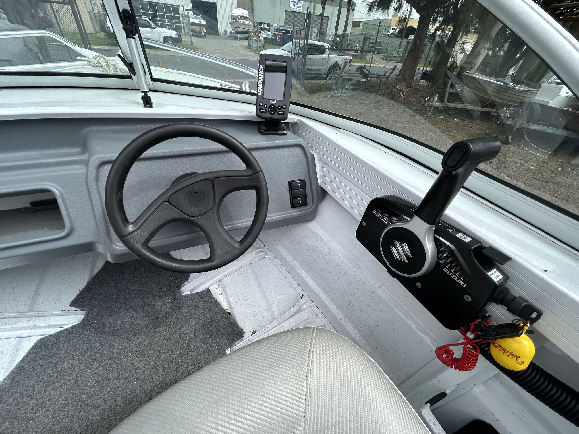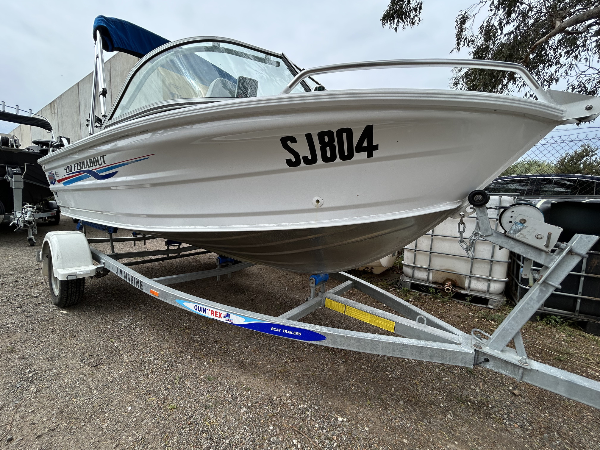 1 Hull/sQuintrex 430 Fishabout 2016 model, Suzuki 30 HP, gal trailer, nicely set up with a Lowrance sounder/plotter, bimini, removeable transom seat, removeable bait board, windscreen grab rail, deluxe helm seats, 4 x extra rod holders and battery switch. This boat has been garaged all of its life and is in pristine condition, has very low hours and all the right gear to get you going this season. This year model is the updated ‘blade hull’ design.