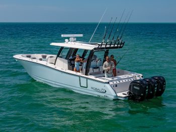This doesn’t even allow for Robalo’s legendary kevlar reinforced, quad radial laminated construction, highest quality gelcoats, worlds best all silicone upholstery, industry best deck fittings, wiring and switches, including all bronze through hull fittings and again – the list is endless. Seriously you have got to check out the Robalo R360 Centre Console now. Priced here with Triple 350 Hp 4 Stroke, 1 kw transducer, wetbar/bait prep station, electric roll away cockpit shade, lithium batterys, outriggers and plenty more!