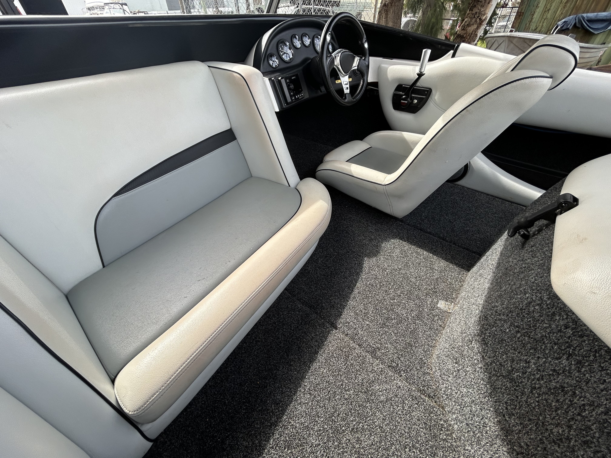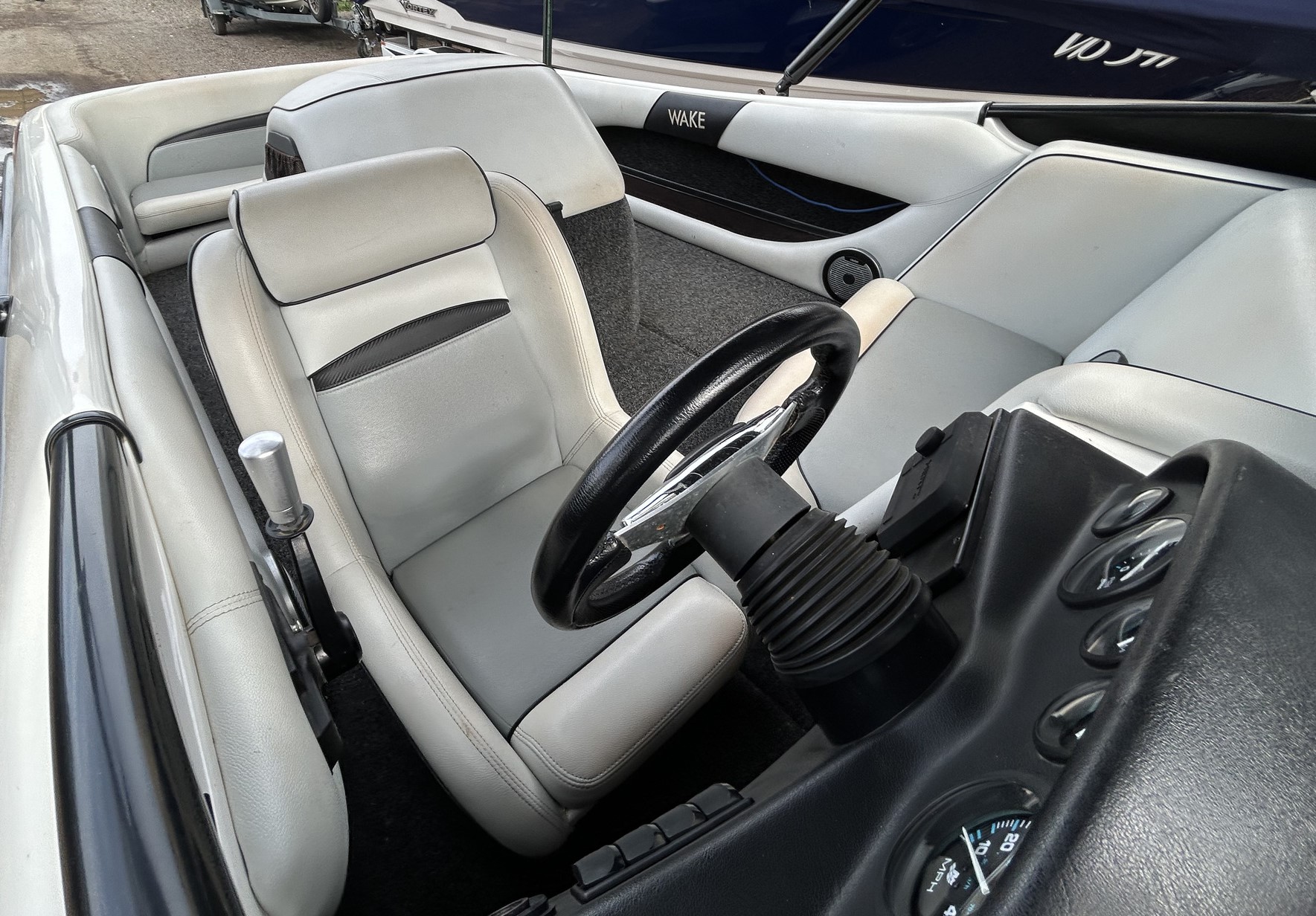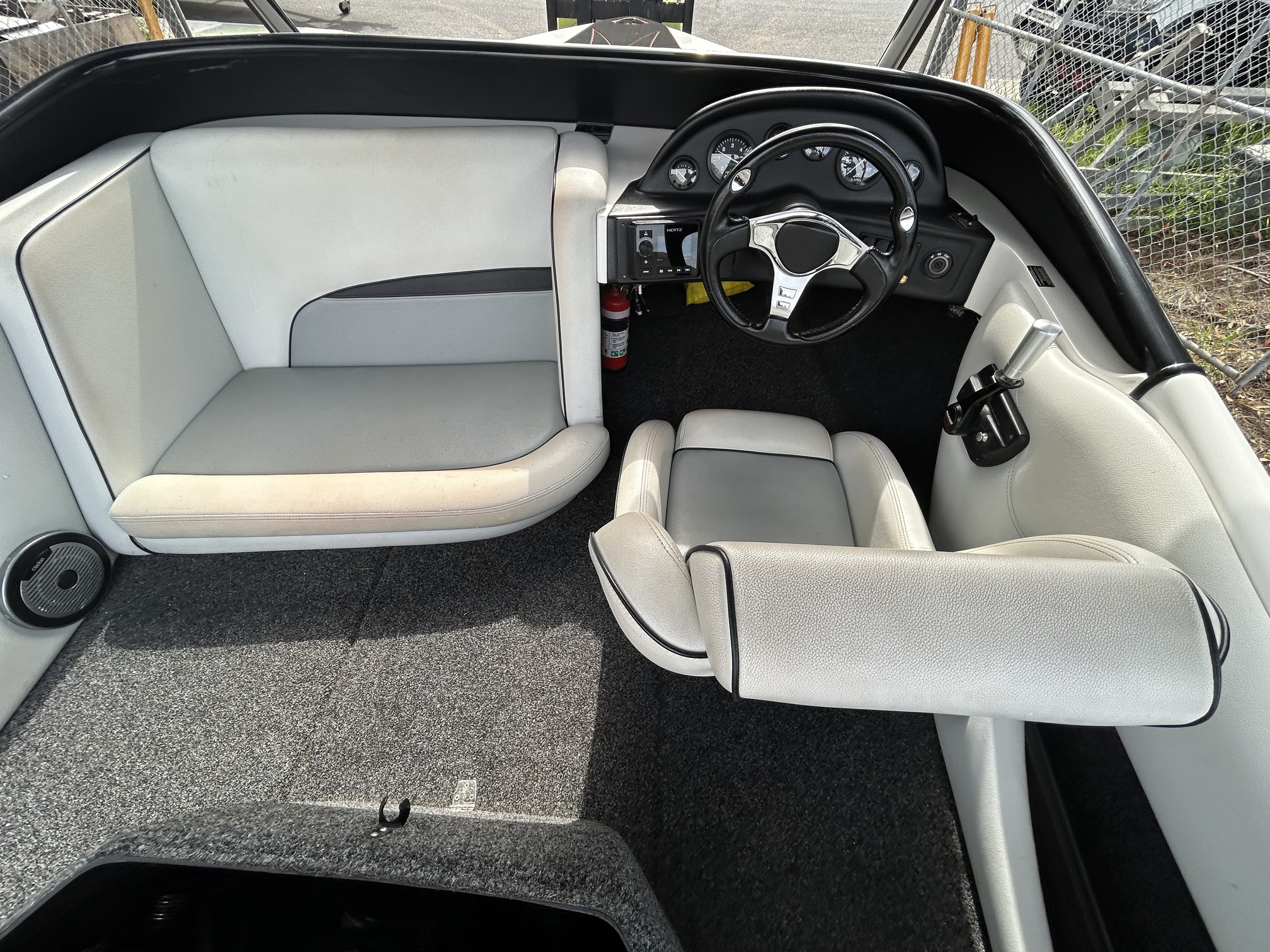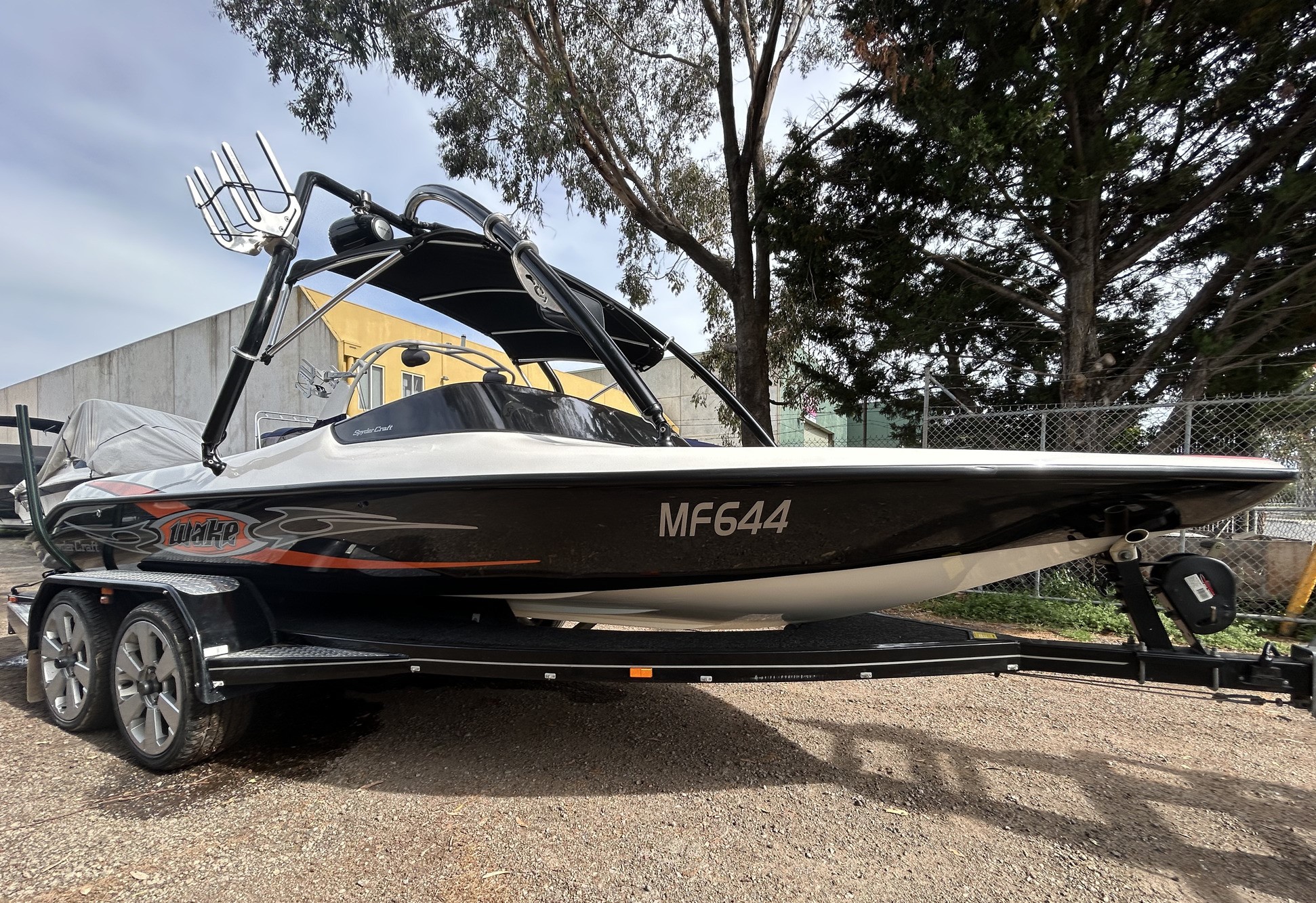 Spydercraft ‘Wake’ model, 6.1m ski boat, (same as a new XFi Illusion) Mercruiser 5.7L V8 LHS, tow sport version, 270 Hp, centre mount (shaft drive) 460 hrs, superb smooth Morse gear shift, Easytow tandem trailer. Nicely set up with Fluidcore wake tower and board racks, bimini, full boat cover with zip on stone guards, recent serious sound system upgrade with a Hertz marine head unit and tower speakers, Kicker amp and subbie, along with an additional Pioneer amp to run the cockpit speakers – solid beats to let everyone know you’re coming! Other goodies include a ski mirror, tilt steering (super convenient in these sports boats), low ski tow point at transom for slalom sessions and a battery isolator. The upholstery is in good nick as is the EVA finish on the swim platform. Really the whole boat is in excellent condition, and we reckon it is the perfect choice for the river, damn or lake this summer, especially at this price. NB: annual service just been done, so ready to go now!