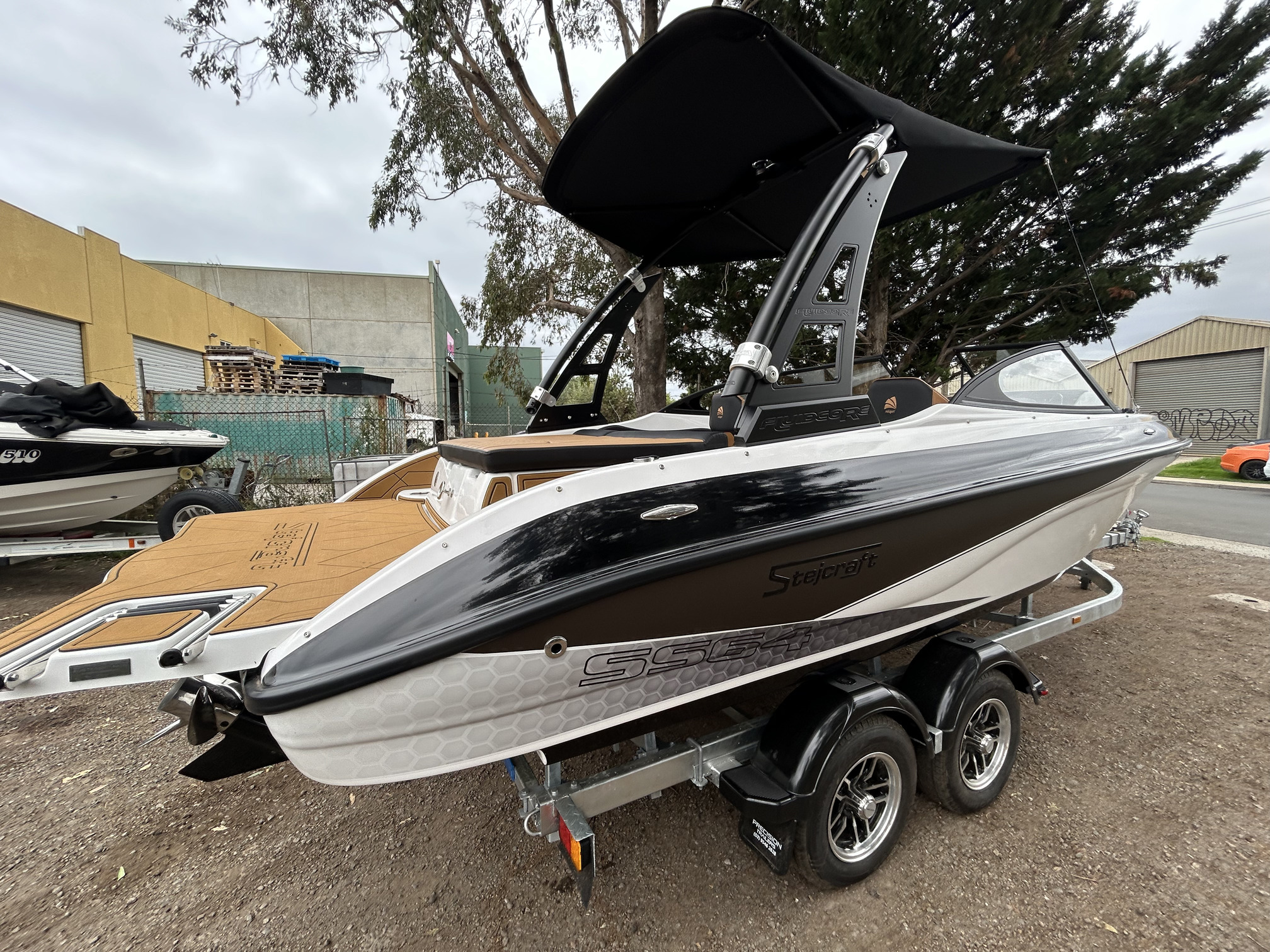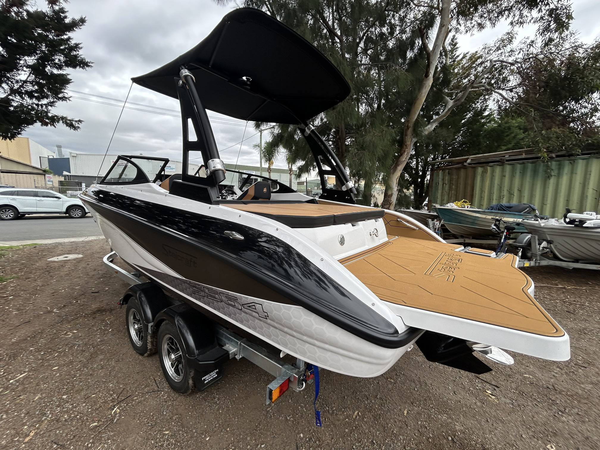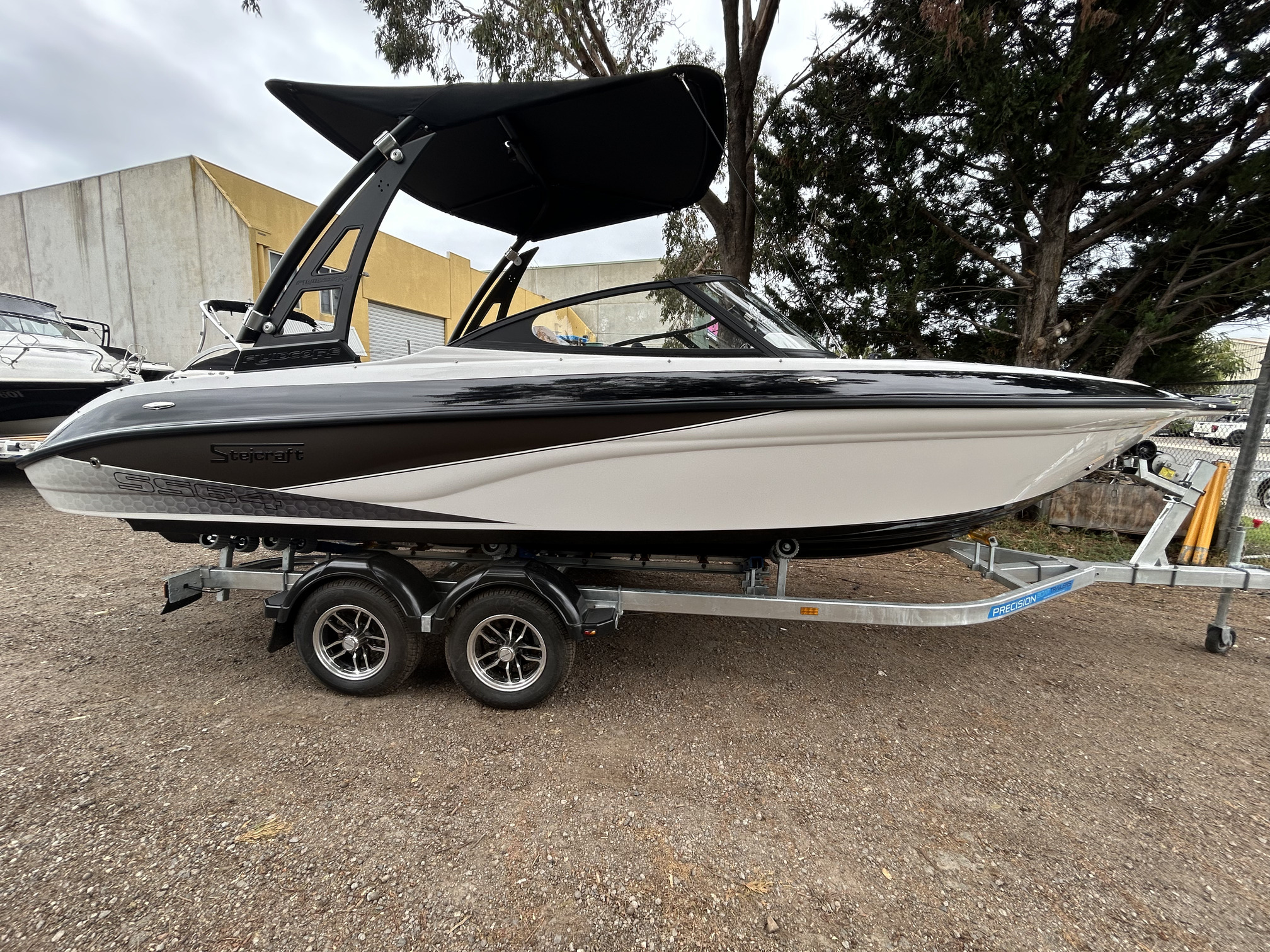 Stejcraft SS64 Bowrider, 2026 model (brand new) Mercruiser 4.5L 250 HP V6 stern drive, tandem trailer with mags, highly optioned version with wake tower, bimini, Lowrance GPS/Sounder, bow infill cushion, cockpit table, slide in bow door, porta pottie, removeable esky, deluxe helm seats with bolsters, bow and cockpit covers, pop up cleats and more! The Stejcraft SS64 sterndrive has the biggest swim platform in its class, performs incredibly well, with exciting performance both off the line and top speed, handles rough conditions with ease owing to its 21-degree dead rise and has a very social layout with plenty of comfortable seating, a rear lounge set up and stacks of storage. We love these boats, they do everything well and we guarantee that you and your family will love it too!