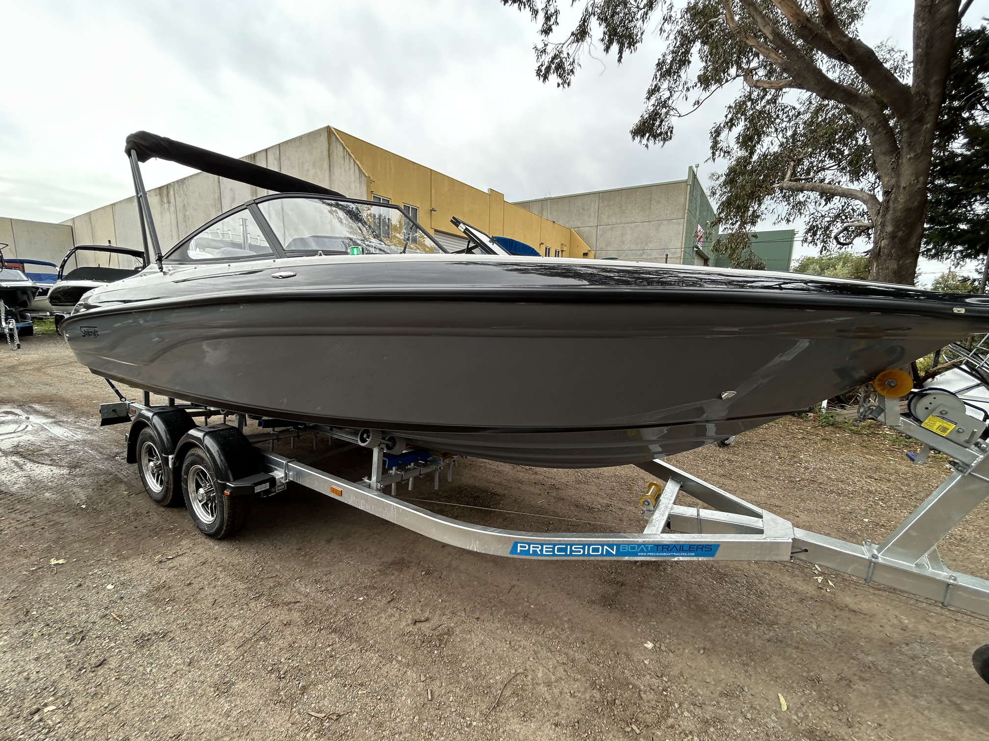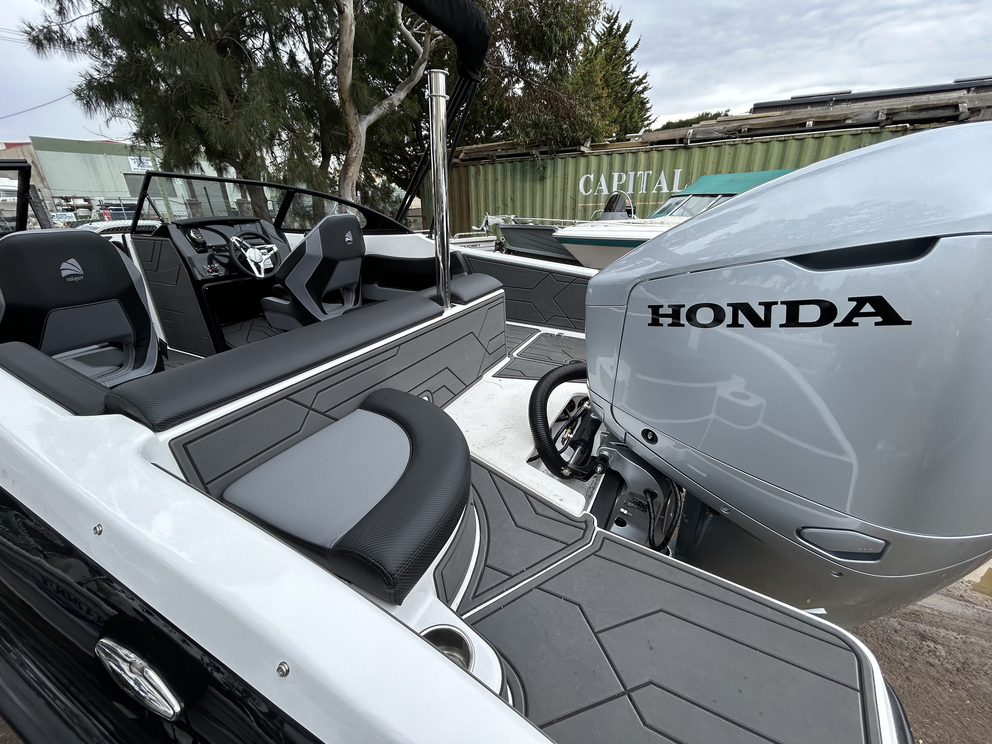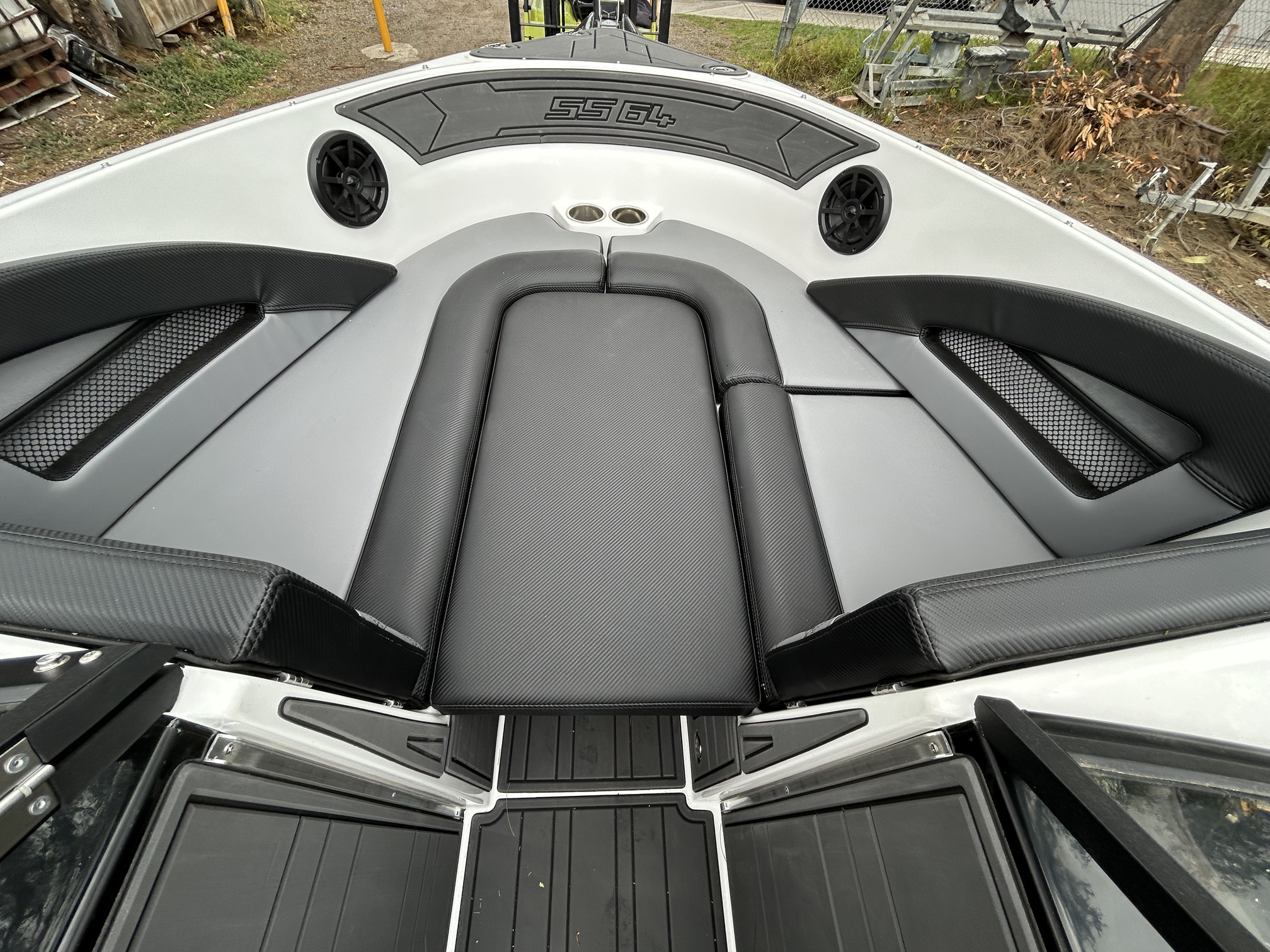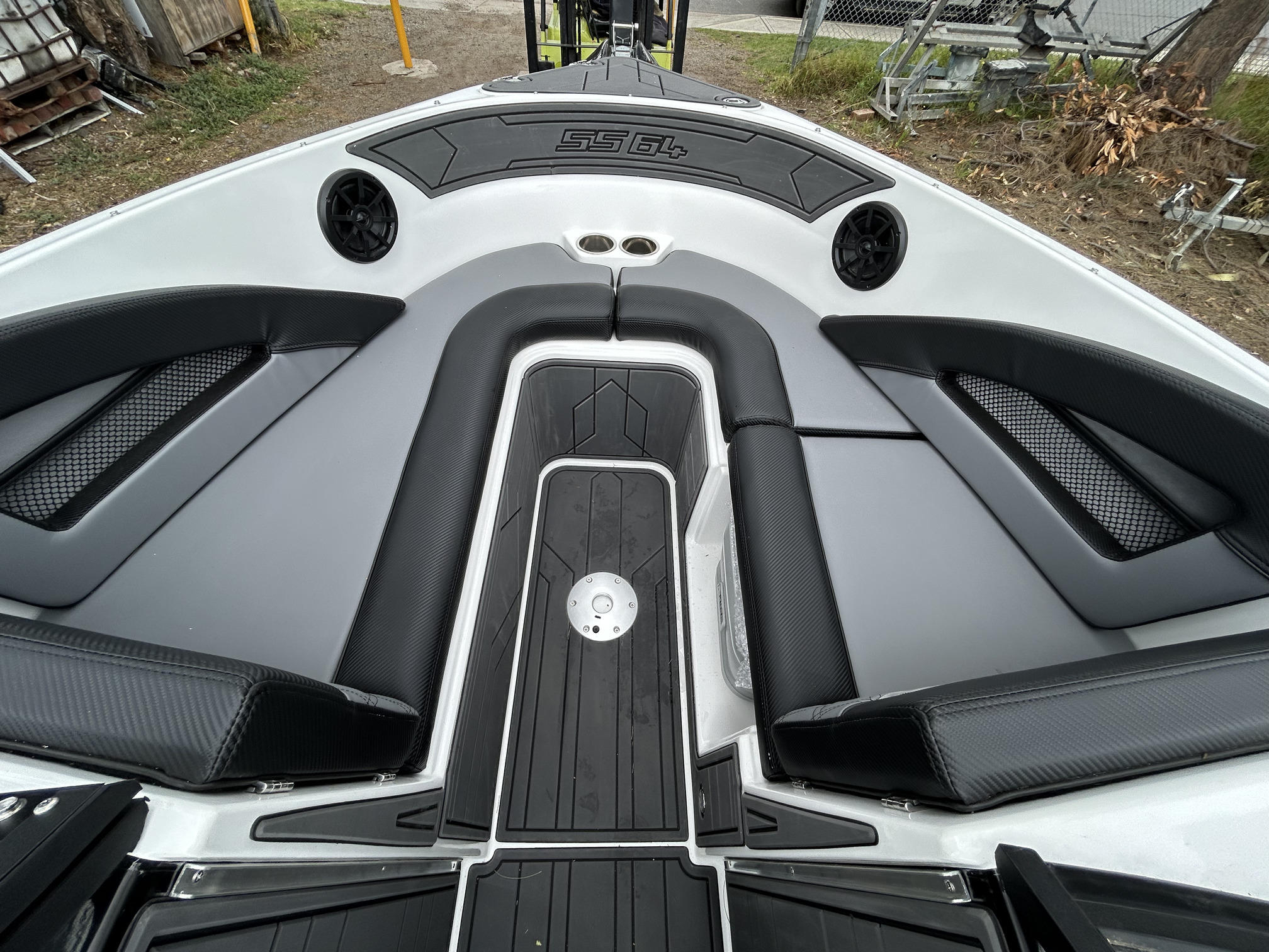 1 Hull/sStejcraft SS64 Bowrider outboard, 2026 model, Honda 200Hp V6, Precision tandem trailer, nicely optioned with ski pole, bimini, bow and cockpit covers, cockpit table, esky, porta toilet, battery isolator, deluxe helm seats, bow infil cushion, colour coded windscreen frame and bimini hoops, modern colour palette with greys and blacks that match the Honda perfectly, price also includes a Garmin GPS/Sounder. (not fitted yet) The SS64 is a proven performer in rougher water with a sharp entry and 21-degree deadrise hull, high free board and tall windscreen. The layout of the outboard version lends itself to social fishing, with a transom seat and good walkaround space fwd of the motor, there is good storage everywhere and with the 200 Hp V6 Honda the performance is mind-blowing. Water ski, fish, cruise – this boat has it all!